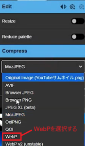 WebP画像を作成する方法はいくつかありますが、簡単なのはGoogleが公開している「Squoosh(スクーシュ)」というWebツールです。