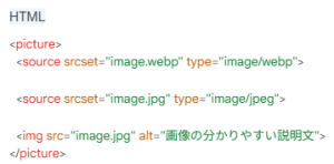 <picture>タグは、ブラウザがどの画像形式に対応しているかを判断し、最適な画像を出し分けてくれるHTMLタグです。